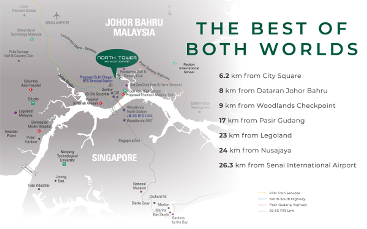 Introducing a new office building with 29 levels in Johor. What sets it apart is its strategic location within an integrated development consisting a mall and a hotel. Situated near the Woodlands Checkpoint, Dataran Johor Bahru and more, North Tower @ Mid Valley Southkey is easily accessible via EDL and Jalan Bakar Batu. The excellent transportation connectivity is further enhanced by the future addition of the Johor Bahru-Singapore RTS link which will make North Tower @ Mid Valley Southkey a much-coveted location for established or any growing business. This new office building in this integrated development has the potential to add significant value and convenience for businesses looking for a dynamic location to thrive.
